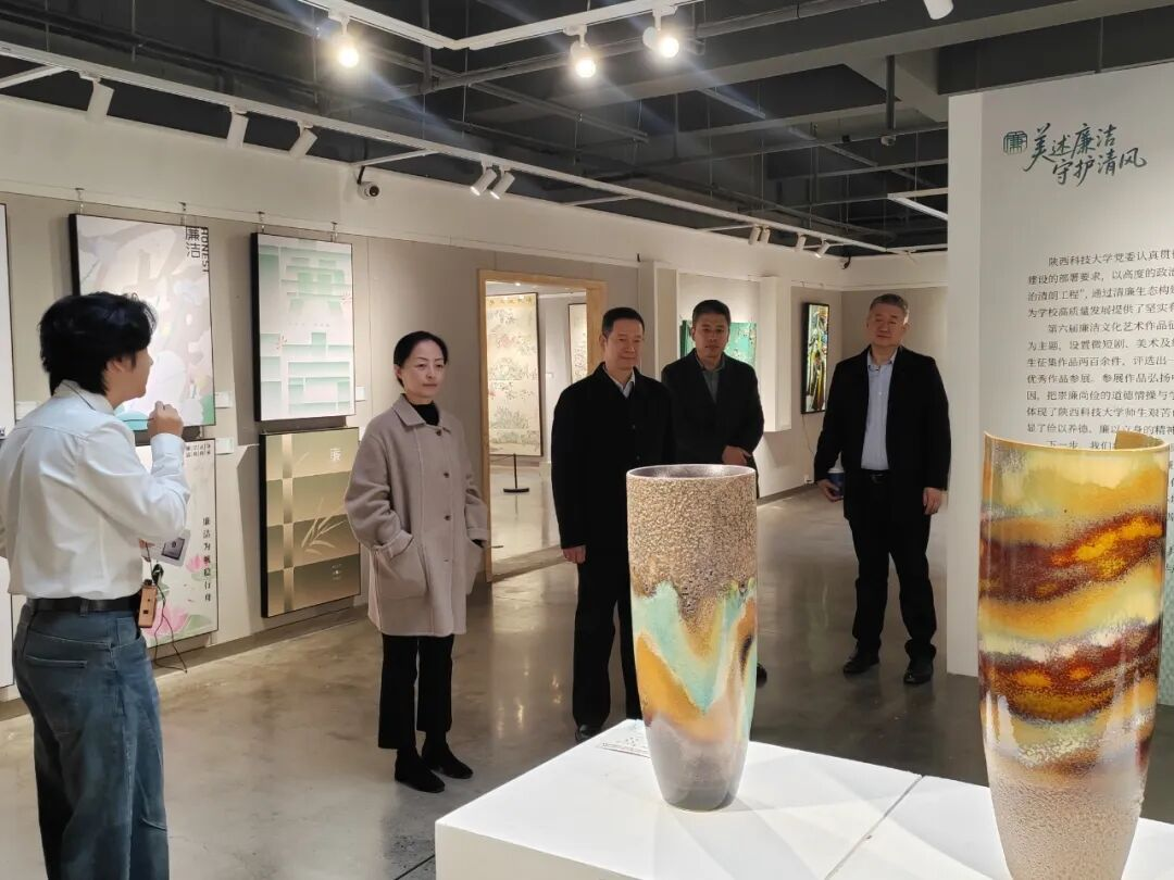 王发合一行还参观了“良渚杯”首届大学生廉洁文化艺术大赛优秀作品西北地区巡展、陕西科技大学第六届廉洁文化艺术作品大赛优秀作品展和中国轻工业博物馆。